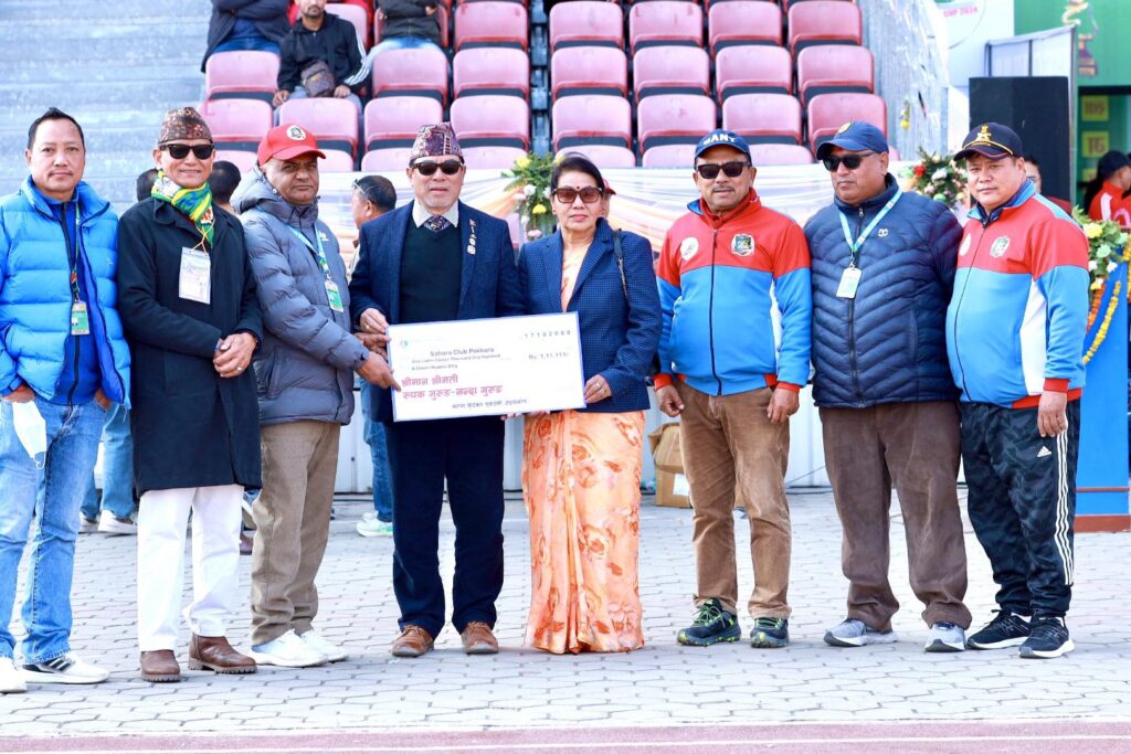 बुधबार भएको २३ औं आहा रारा पोखरा गोल्ड कपको पहिलो सेमिफाइनल खेलको क्रममा पूर्व खेलाडी रुपक तथा नन्दा गुरुङले उक्त रकम बराबरको चेक क्लवका अध्यक्ष केशवराज बराललाई हस्तान्तरण गर्नु भएको महासचिव रामजी प्रसाद अधिकारीले बताउनु भयो ।