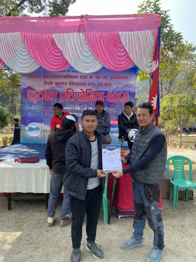 शुक्रबारको अन्तिम खेलमा बालोदयले एल.पी.देवकोटालाई १–० को गोल अन्तरले पराजित गरेको हो । बालोदयको जितमा अंशुमान बस्नेतले एक गोल गरे । खेलमा उनी म्यान अफ दी म्याच घोषित भए । यसैबिच, यही फागुन ६ गतेसम्म प्रतियोगिता संचालन हुने भएको छ । पोखरा महानगरपालिका वडा नम्बर १७ को प्रबद्र्धनमा उक्त प्रतियोगिता भएको हो ।