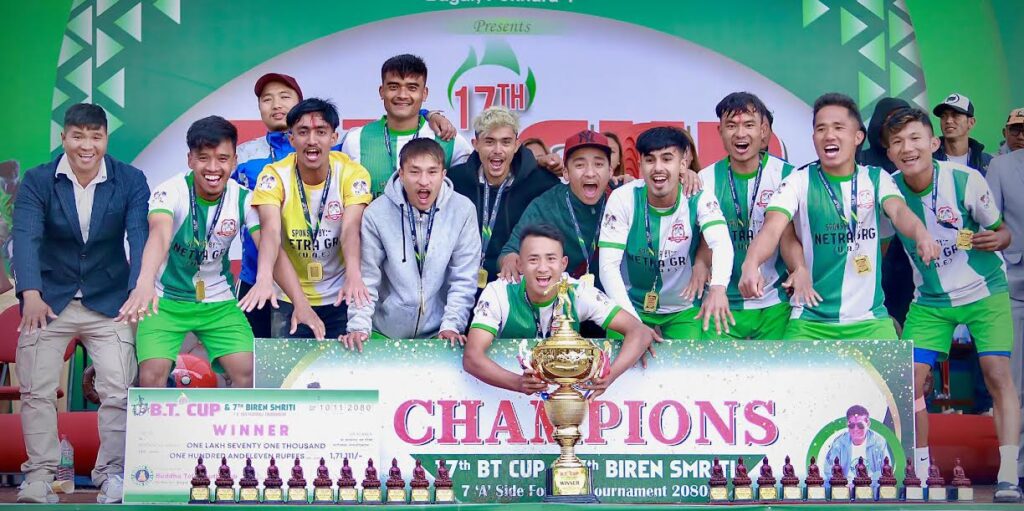 ‘हामी एक हौं’ भन्ने नारासहित सामाजिक तथा खेलकुद क्षेत्रमा क्रियाशिल बुद्धटोल युवा (बिटी) क्लबको आयोजनामा सम्पन्न सातौं विरेन स्मृति १७ औं बिटी कप खुल्ला सेभेन ए साइड फुटबल प्रतियोगितामा लामागाउँ गुम्बा एफसी च्याम्पियन बनेको छ ।