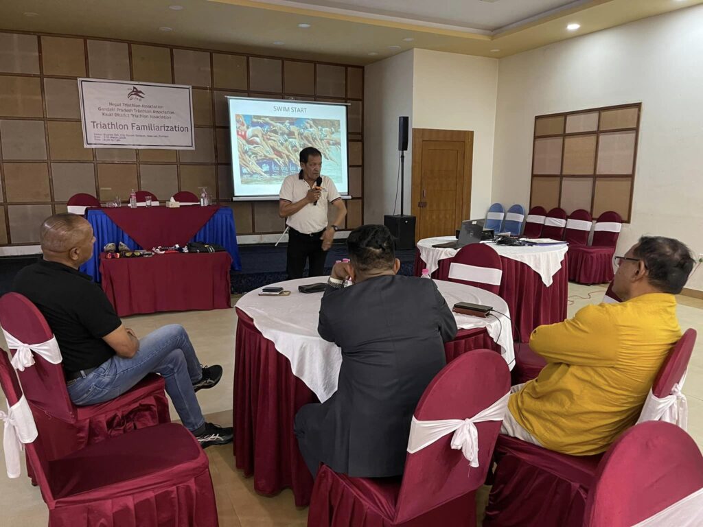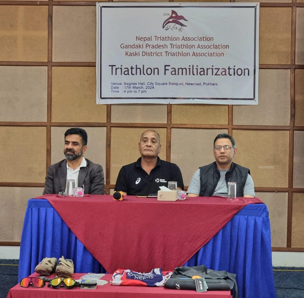 नेपाल ट्रायथलन संघले गण्डकी प्रदेश ट्रायथलन संघ र कास्की जिल्ला ट्रायथलन संघसँगको सहकार्यमा आइतबार साँझ पोखरामा आयोजना गरेको ‘ट्रायथलन फेमिलियराइजेसन’ कार्यक्रमको सन्दर्भमा अध्यक्ष श्रेष्ठले उक्त कुरा बताउदै अब यसको अपनत्व पोखराले लिनुपर्नेमा जोड दिनु भयो ।