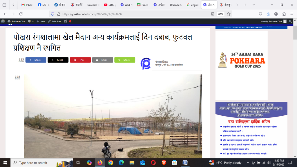 जिल्ला खेलकुद विकास समिति कास्कीले जीवन विज्ञान प्रतिष्ठानलाई एक साता विराट चक्र विज्ञान कार्यक्रम गर्न अनुमति दिए पछि उक्त फुटवल प्रशिक्षण मैदान विगत दुई साता अघि देखि अबरुद्ध हँुदा फुटवल प्रशिक्षण प्रभावित भएको एन्फा कस्कीका अध्यक्ष उज्वल रन्जितले गुनासो गर्नु भएको थियो ।
