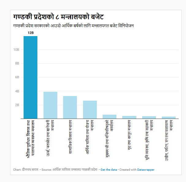 गण्डकी प्रदेश सरकारले आर्थिक वर्ष २०८२/८३ का लागि ३१ अर्ब ९७ करोड रुपैयाँको बजेट सार्वजनिक गरेको छ। आइतबार प्रदेश सभामा आर्थिक मामिला तथा योजना मन्त्री डा. टकराज गुरुङले आगामी वर्षको लागि ३१ अर्ब ९७ करोड ९९ लाख ९९ हजार रुपैयाँ बराबरको बजेट प्रस्तुत गर्नुभएको हो।