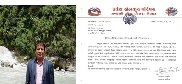 प्रदेश खेलकुद परिषद, गण्डकी प्रदेशका सदस्य विनय थापालाई परिषदको निमित्त सदस्य सचिवको जिम्मेवारी सम्हाल्नु भएको छ । परिषदका सदस्य सचिव श्रीधर शर्माको विदेश भ्रमण तथा बिदाका कारण उक्त जिम्मेवारी अस्थायी रूपमा थापालाई दिइएको परिषदले जनाएको छ ।
