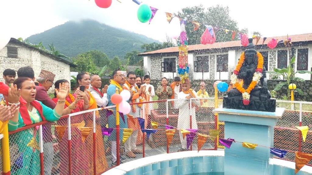 पोेखराको संस्कृत माध्यमिक विद्यालय परिसरमा निर्माण गरिएको जलाशय भित्र निर्माण गरिएको भगवान शंकरको जटाबाट निस्कने जलधाराको केदारेश्वर महादेव मणी मन्दीरका पीठाधिस चिद्घन चैतन्यजी महाराजले आज एक समारोहबीच उद्घाटन गर्नु भएको छ ।