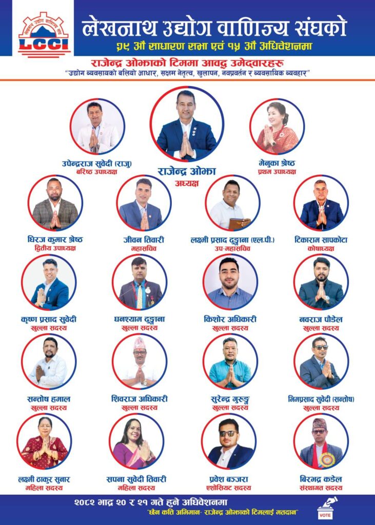 यसैबिच, राजेन्द्र ओझा नेतृत्वको प्यानलमा रहेका उम्मेद्वारहरुले घरदैलो अभियानलार्इ समेत तिव्रता दिदै आएकाछन् । उमेदवारहरु तल यस प्रकार रहेका छन् ।