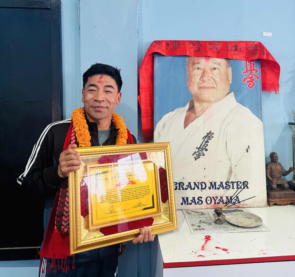 करातेका अन्तराष्ट्रिय प्रशिक्षक असोक लामा रुम्बालाई सम्मान लिन भ्याई नभ्याई