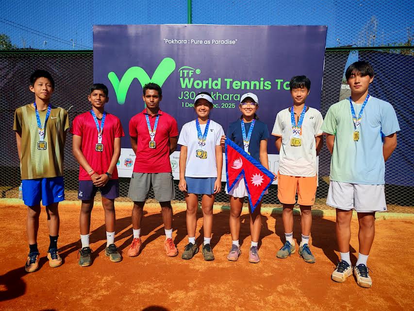 कोरियाका युल हो जुङ र नेपालकी शिवाली गुरुङले पोखरामा जारी आइटिएफ जे–३० टेनिस टुर सर्किट–१ अन्तर्गत सिंगल्स र डबल्सतर्फ दोहोरो उपाधि जित्दै ऐतिहासिक सफलता हात पारेका छन् । कास्की जिल्ला टेनिस संघको आयोजनामा सञ्चालन भइरहेको प्रतियोगिताको ब्वाइज सिंगल्स फाइनलमा युल हो जुङले श्रीलंकाका गानुका फर्नान्डोलाई रोमाञ्चक टाइब्रेकमा ६–२, ६–७(७) ले पराजित गर्दै उपाधि जिते । गल्र्स सिंगल्सतर्फ नेपालकी शिवाली गुरुङले ताइपेइकी के–ची सुलाई ६–२, ६–२ को सोझो सेटमा हराउँदै उपाधि हात पारिन् ।
