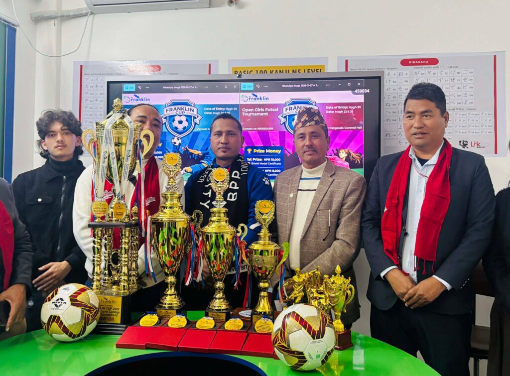 पोखराको फ्रेङ्कलिन एजुकेसन कन्सल्टेन्सीको आयोजनामा फ्र्याङ्कलिन कप फुटसल प्रतियोगिता हुने भएको छ । प्रतियोगिता माघ २२ गतेदेखि २५ गतेसम्म पोखरा रंगशालाको कभर्ड हलमा सञ्चालन हुने भएको मंगलबार पोखरामा आयोजित पत्रकार सम्मेलनमा जानकारी गराइएको हो ।