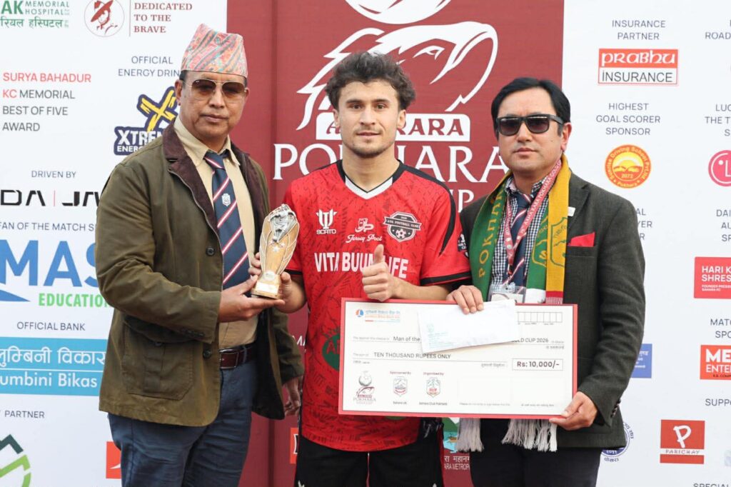 आबा फुटवल क्लवको जितमा उमिदजोन करिलोभले निर्णायक गोल गर्नुभयो । उहाँले खेलको ५६ औं मिनेटबाट करिब ३५ यार्ड टाडाबाट प्रहार गरेको वलले जाली चुम्यो । आजको खेलमा म्यान अफ दी म्याच घोषित हुदै उमिदजोनले नगद १० हजार साथमा ट्रफी प्राप्त गर्नुभयो । उज्वेकिस्तानको आबा फुटवल क्लवले दोश्रो सेमिफाइनल खेलमा जावलाखेल युथ क्लवसंग यही फागुन ७ गते प्रतिष्प्रर्धा गर्ने भएको आयोजक सहारा क्लवले पोखराक्लिकलाई जनाएको छ ।