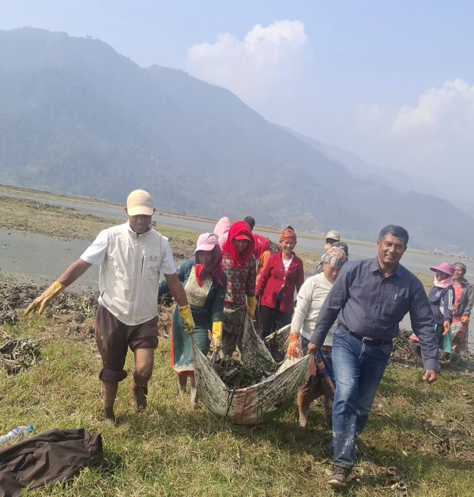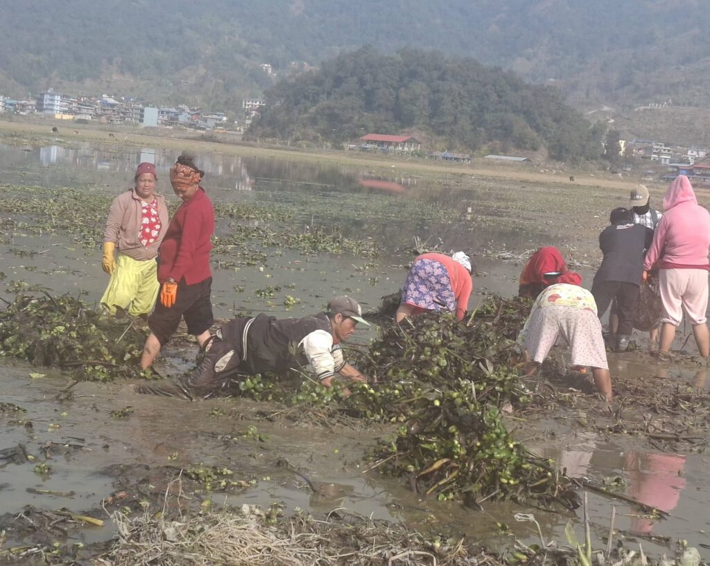 डिभिजन वन कार्यालय कास्कीको ३ लाख रुपैयाँ आर्थिक सहयोग, जलारी समुदायको समन्वय तथा नागरिक समाजको सहकार्यमा अभियान अघि बढाइएको उहाँले जनाउनु भयो । पौडेलका अनुसार बर्खायाममा जलकुम्भी अत्यधिक मौलाएर तालभरि फैलिने हुँदा त्यसलाई पछि हटाउन दशौं लाख रुपैयाँ खर्च हुने गरेको छ । “समस्या दिगो रूपमा समाधान गर्न हामीले यसको मुहानमै पुगेर अहिले सफाइ सुरु गरेका हौँ,” उहाँले भन्नुभयो, “हिउँदमा निकालिएको जलकुम्भी सजिलै सुक्ने भएकाले व्यवस्थापन पनि सहज हुन्छ ।” अभियान अन्तर्गत हाल दैनिक २२ जना जलारी समुदायका सदस्य परिचालन गरिएको छ भने दुई जना थप गरी जम्मा २४ जनाले काम गरिरहेका छन् । उनीहरूलाई दैनिक ४ घण्टा (बिहान ९ः३० बजेदेखि) काममा लगाइने र प्रतिव्यक्ति ६०४ रुपैयाँका दरले सेवाशुल्क प्रदान गरिनेछ । दैनिक करिब १४ हजार रुपैयाँ खर्च हुने गरी काम अगाडि बढिरहेको जनाइएको छ । पोखरा–१८ ढल्केबर, माछा पोखरी क्षेत्रलाई जलकुम्भी फैलिने मुख्य केन्द्र मानिएको छ । वर्षायाम आउनुअघि नै सफाइ सुरु गरिएकाले तालमा जलकुम्भी फैलिन नदिने लक्ष्य राखिएको छ ।