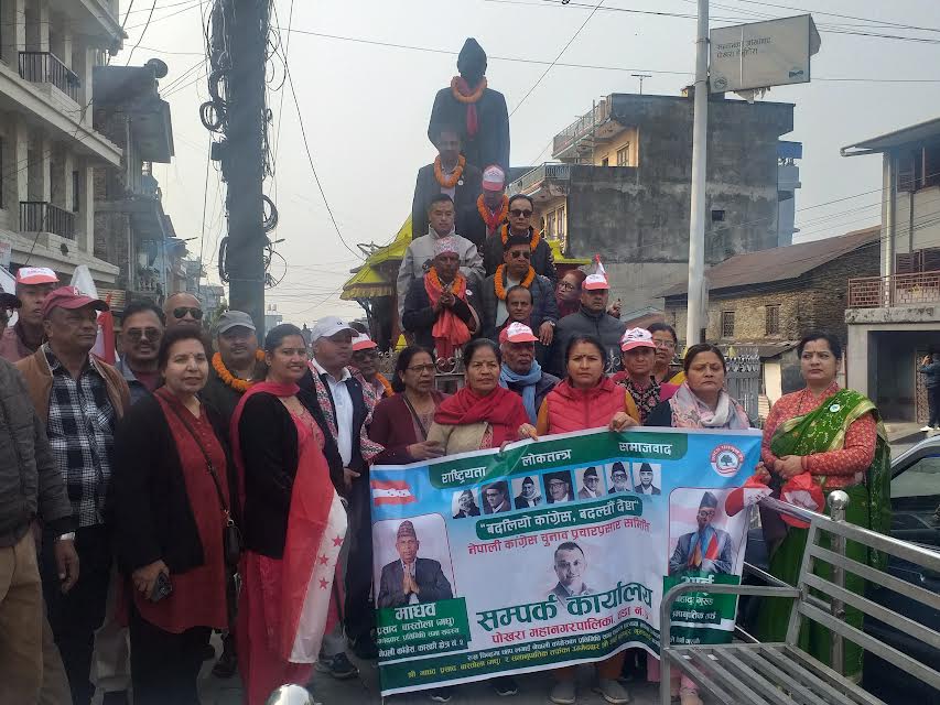 पोखरा–४ विभिन्न टोलका काँग्रेस कार्यकर्ता उत्साहपूर्ण रुपमा आफ्नो पक्षमा मत मागिरहेका छन् ।काँग्रेस सच्चिएर आएको छ, अव ढुक्क भएर मतदान गर्न कार्यकर्ताहरुले मतदातालाई आग्रह गरिरहेका थिए । पोखरा–४ को सिद्धार्थचोकबाट सुरु भएको घरदैलो कार्यक्रमा स्थानीय नेता तथा कार्यकर्ता सहभागी थिए । गणेशटोल निवासी प्रविण पालिखेले भने यस पटकको निर्वाचनमा काँग्रेसका कार्यकर्तामा उत्साह थपिएको देख्न पाइयो । यस पटक इमान्दार नेता माधव प्रसाद बास्तोलालाई उम्मेदवार पाउँदा आफू खुसी भएको उनले सुनाए । नेता तथा कार्यकर्ता अधिकांश घरमा पुगेर भोट माग्ने काम गरेका छन् । घरदैलो कार्यक्रममा नेपाली काँग्रेसका नेता तथा मन्त्री बिन्दुकुमार थापा, वीरेन्द्रनारायण बिजुक्छे, ऋषि काफ्ले, केशर निर्दोषी, सकुन्तला कोइराला, शंकर बास्तोला, कृष्ण कुमारी परियार, देवकृष्ण पराजुली, विष्णु कोइराला लगायतका नेता तथा कार्यकर्ता सहभागी थिए ।