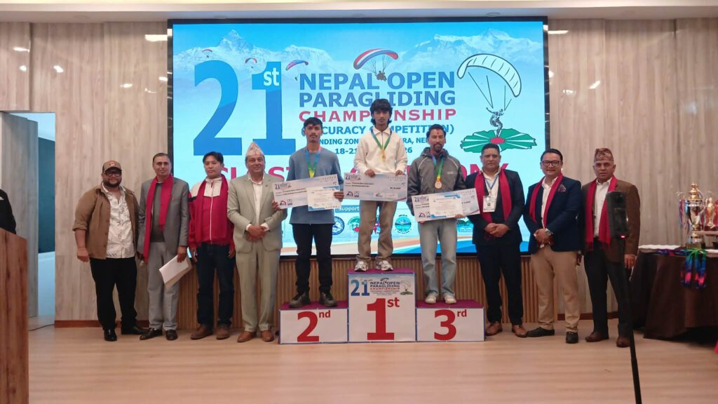 नेपाल हवाई खेलकुद संस्था (ना) को आयोजनामा पोखरामा सम्पन्न २१औँ खुल्ला नेपाल प्याराग्लाइडिङ च्याम्पियनसिप–२०२६ को उपाधि भारतका अक्षय कुमार र चाइनाका झाउ चेनले जित्नु भएको छ । पोखराको सराङकोटबाट उडान गरी खपौदीमा निर्धारित बिन्दु नजिक पुग्दै समान ७ अंक सहित दुबै जनाले प्रथम स्थान हासिल गर्न सफल हुनु भएको हो ।
