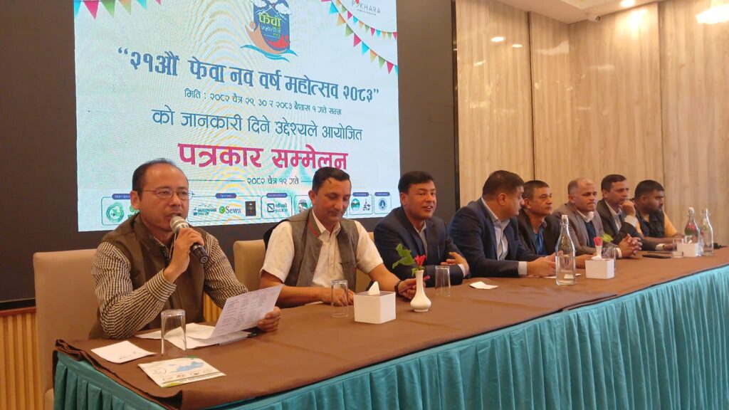 नेपाली नयाँ बर्ष २०८३ को अवसरमा यस बर्ष पनि यही चैत २९ गतेदेखि संचालन हुने २१ औं फेवा नव बर्ष महोत्सवको तयारी अन्तिम चरणमा पुगेको छ । ३ दिने उत्तः महोत्सवमा तीन लाख आन्तरिक तथा बाह्य पर्यटक भित्राउने लक्ष्य सहित तयारी अन्तिम चरणमा पुगेको होटल संघ पोखरा नेपालले आज(विहिबार) पोखरामा आयोजित पत्रकार सम्मेलनमा जानकारी गराएको हो ।